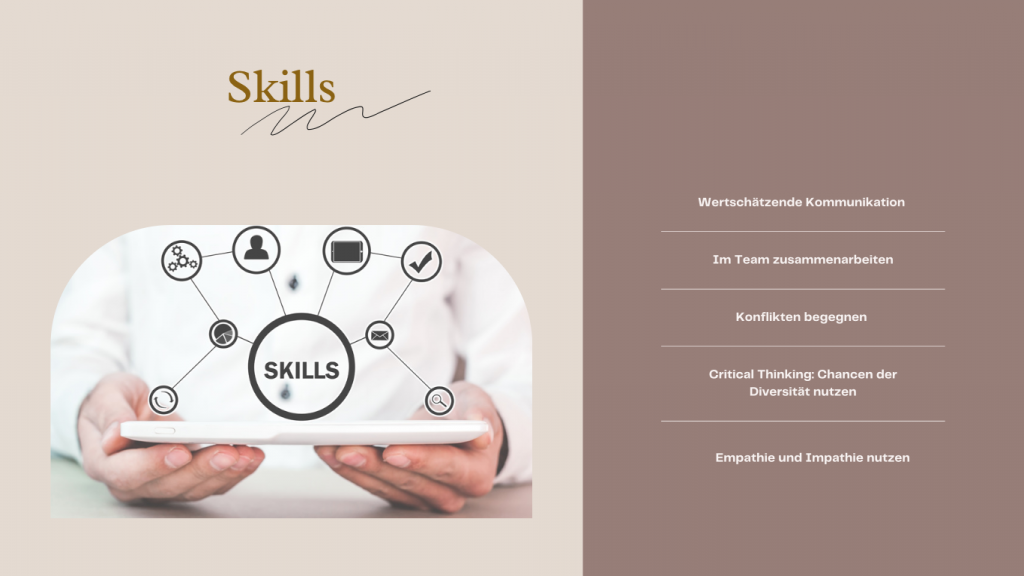 Dabei basieren die einzelnen Trainings und Schulungen auf den vier Anforderungen der OECD an zukunftsorientierte Bildung und Erziehung, wie Charakterbildung, Wissensvermittlung, sowie Haltung und Skills. Meine Trainings, Coachings und Schulungen basieren auf einem ganzheitlichen Ansatz mit dem Ziel individuelle Kompetenzen und Fachkenntnisse aus- und weiterzubilden.
